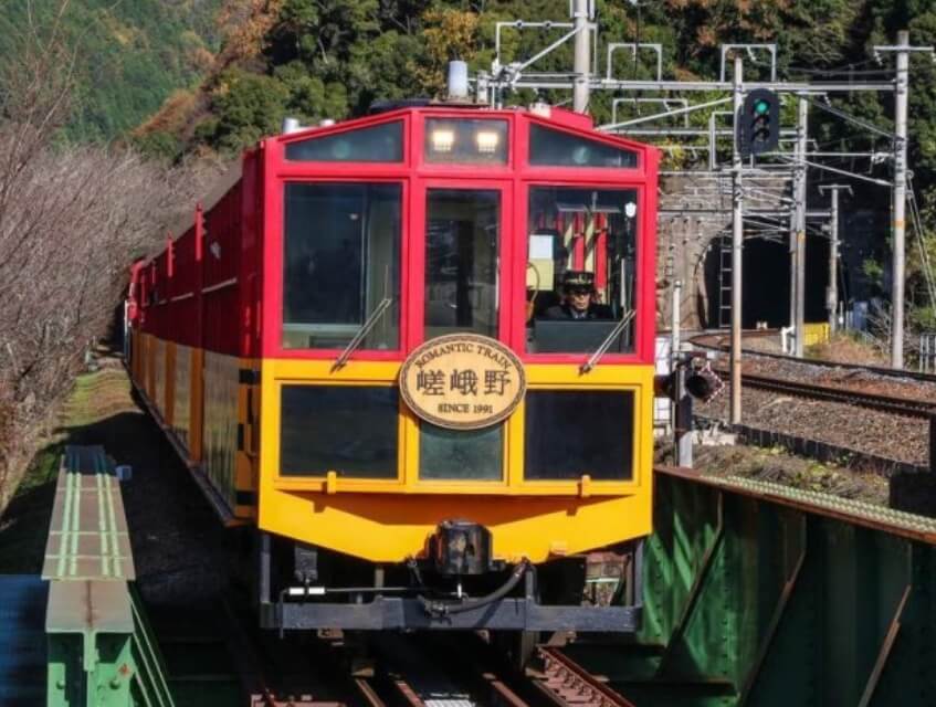 사가노 로맨틱 열차는 호즈강을 따라 달리는 열차로, 아라시야마의 자연을 감상할 수 있는 최고의 방법입니다. 특히 단풍철에 탑승하면, 주변의 아름다운 가을 풍경을 만끽할 수 있습니다. 열차를 타고 느긋하게 주변 풍경을 즐겨보세요.