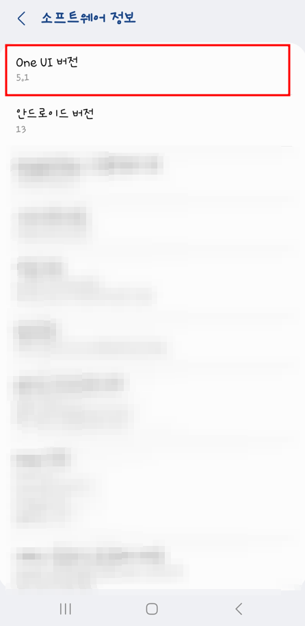 3. 현재 ONE UI 버전을 확인 하실 수 있으며 만약 5.0 이상이 아닐 경우