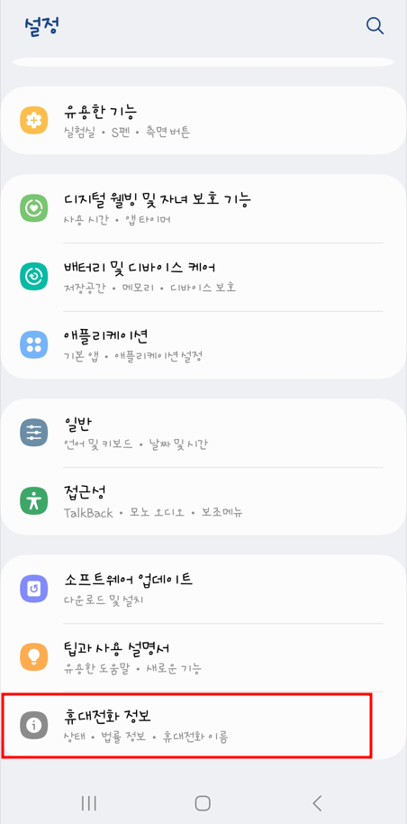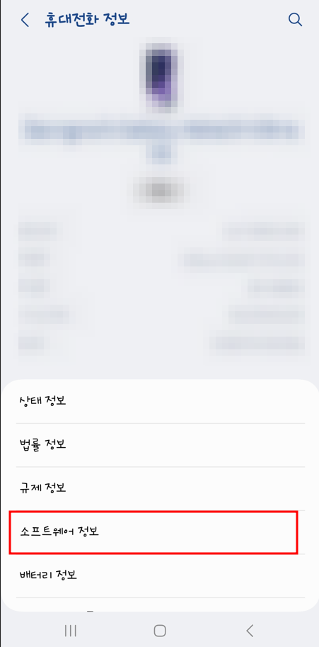 2. 하단의 휴대전화 정보를 선택한 후 소프트 웨어 정보를 눌러주세요.