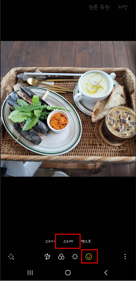3. 가장 아래에서 왼쪽에 있는 갤러리 앱 아이콘을 선택하신 후 스티커 만들기를 눌러줍니다.